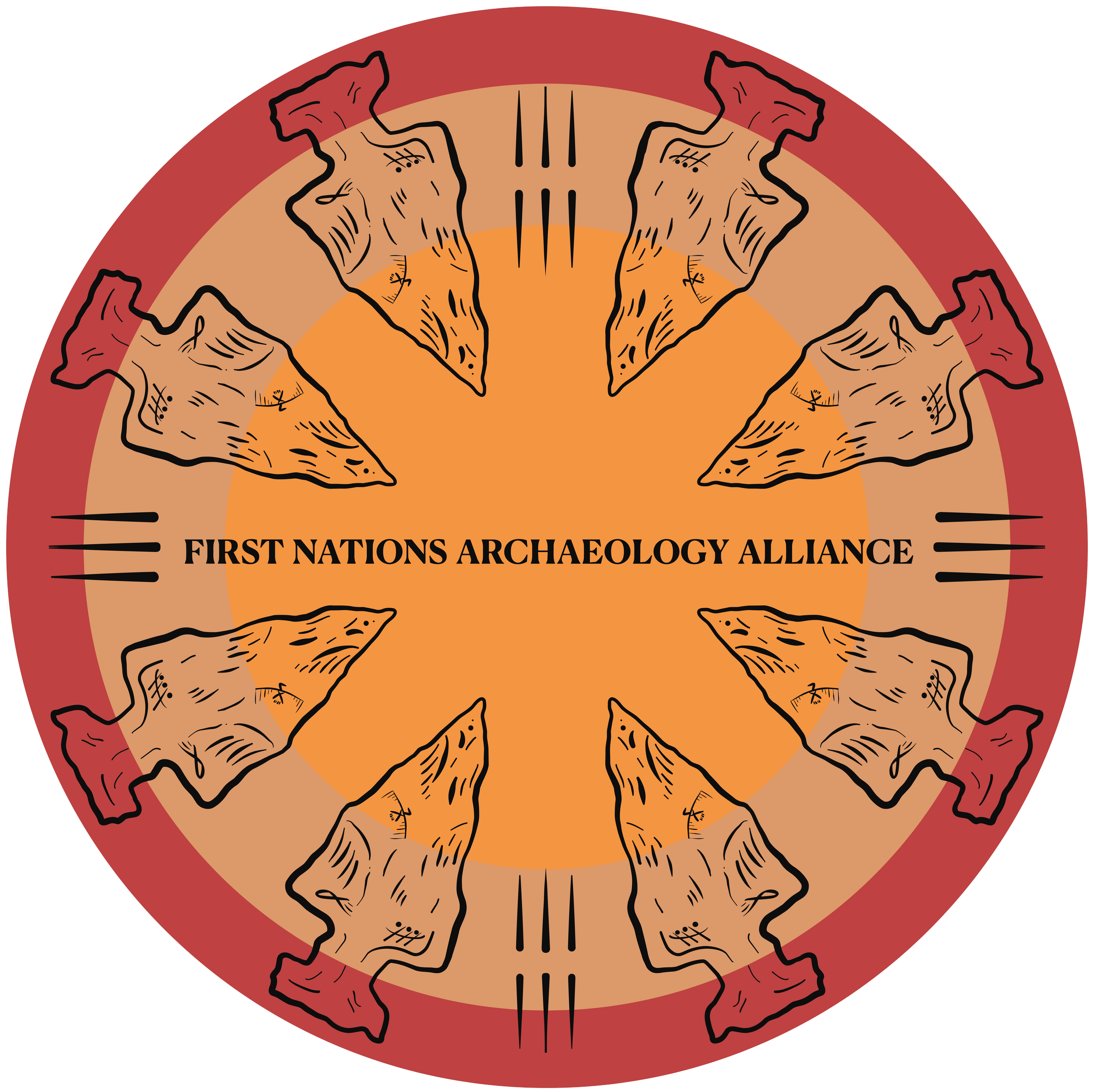 By embedding these forms within the arrowhead, the design reflects how Indigenous histories have often been obscured, yet remain present and resilient within the land itself. The logo invites viewers to look more closely, mirroring FNAA's work to reclaim narratives and strengthen Indigenous leadership in archaeology.